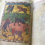 この写本については、「A Spanish Apocalypse – The Morgan Beatus Manscript」という本があり、私が最初に買ったBeatus写本の本です。この本では挿絵をすべてカラーで紹介しています。サイズも27.9 x 36.2 cmと大きく、ほぼ?原寸大で迫力があります。この本を見て、スペインの彩色写本にすごく惹かれていろいろ他の写本も見るようになりました。