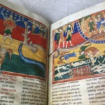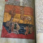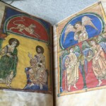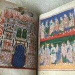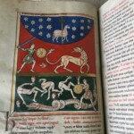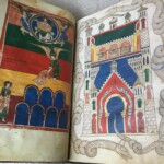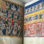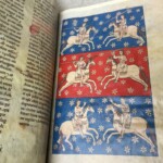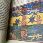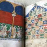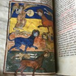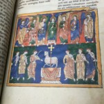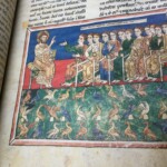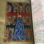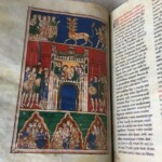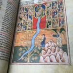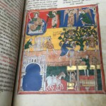 挿絵の数も110点と3番目の多さです。(1番多いのはジローナ写本で114点です)見開きや全頁大の挿絵が多数あり、色も鮮やかで金箔も使用されています。挿絵の数が多いのでここでは一部の紹介にとどめたいと思います。