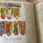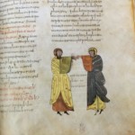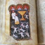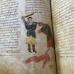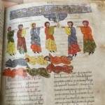 彩色はモーガン写本同様に赤・青・黄だけでなく、薄緑色や薄オレンジ色などいろいろな色が使われています。
