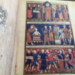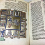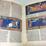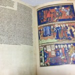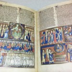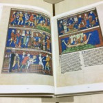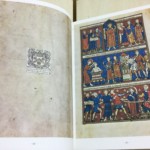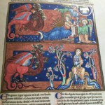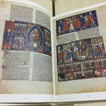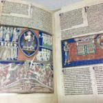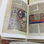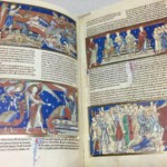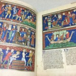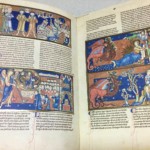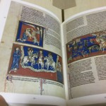 Trinity Apocalypseの紹介です。トリニティカレッジ所蔵の黙示録写本で、13世紀半ばに英国で制作されたアングロ・ノルマン語による彩飾写本です。71点の大型彩飾画が描かれています。44cmx30cmx2.2cmと大型で、 32葉(64ページ)のほとんどのページに挿絵が書かれています。