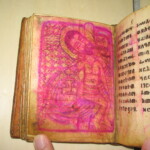 聖書だと思うのですが、挿絵の部分は赤で書かれています。本文も多分大事なところを赤字で書かれています。